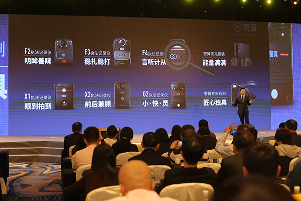 警翼常務(wù)副總經(jīng)理崔乘剛先生分享了產(chǎn)品正能量,并發(fā)布了一系列新品,產(chǎn)品陣容強(qiáng)大,分別有記錄儀F2、F3、F4、G2、X1、X2、W7工作站、快充底座,功能優(yōu)化了包括語音對講、HDR、視頻減震器、智能可穿戴,超高清攝錄,快速充電等方面。