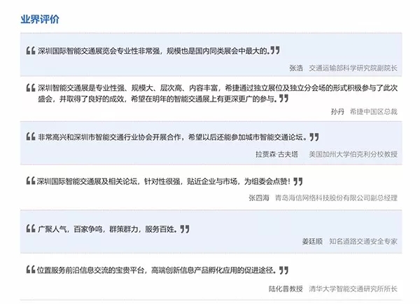 智能交通展作為亞洲最大的智能交通專業(yè)展會,經(jīng)過多年的錘煉,已經(jīng)成為中國智能交通領域最具規(guī)模和專業(yè)性、國際性的行業(yè)展會,成為展示國內(nèi)外智能交通先進技術裝備和綜合性集成平臺、促進成果轉化與項目運作,拉動智能交通行業(yè)發(fā)展與交流的全球性舞臺,自創(chuàng)辦至今,獲得行業(yè)內(nèi)一致好評。