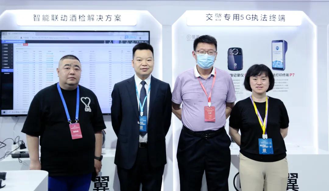 中國道路交通安全協(xié)會(huì)秘書長(zhǎng)苑雷先生(右二)蒞臨警翼展臺(tái)參觀指導(dǎo)