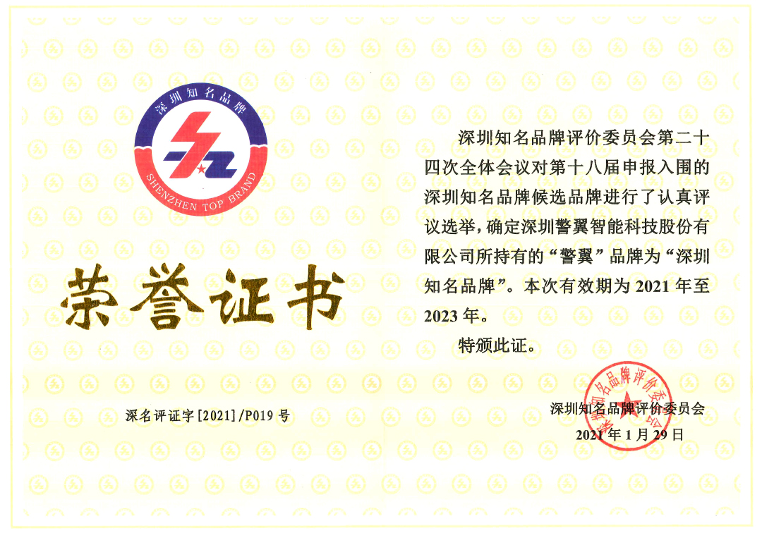 2021年5月11日,第五屆“深圳國際品牌周”開幕大會在深圳廣電演播大廳隆重舉行,“第十八屆深圳知名品牌成果發(fā)布會”同期舉行,深圳警翼智能科技股份有限公司作為獲選單位受邀出席本次大會。
