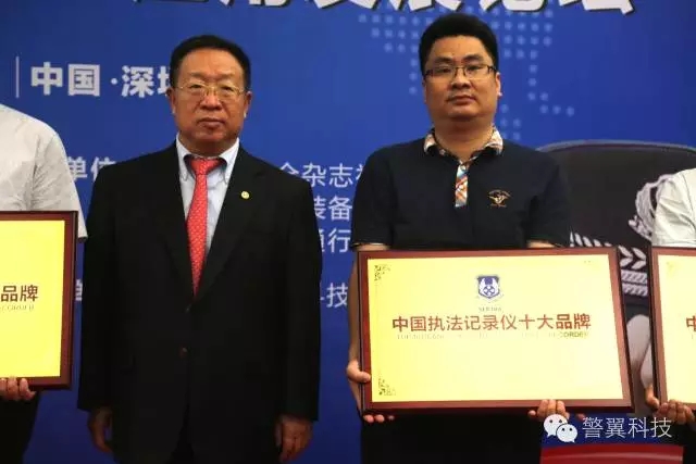 深圳市安防協(xié)會會長楊金才先生為警翼頒發(fā)“中國執(zhí)法記錄儀十大品牌”獎牌